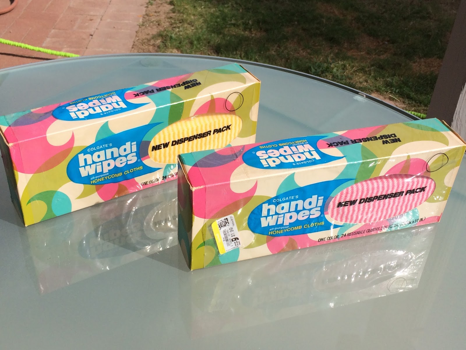 I seriously gasped! Ok, I screamed... in my head. I had never even seen these dispenser packs back in the day, but these are the actual vintage Colgate-Palmolive Handi-wipes!