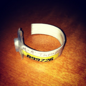 So yesterday while putzing (or puttering) in my sewing room, or what I now affectionately call my Nook 'n Cranny ~ I came upon my kids hospital ID bracelets. Yes, how ironic, having just seen Jonah's bracelet posted on facebook just days before. But also miraculous, as I had not seen these bracelets since we moved into this house in 1994. You see, I have a rather large drawer that I deposit memorabilia and miscellaneous stuff that I will either scrapbook someday or just save. So I decided to look through it.